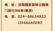 地 址:沈陽國(guó)家森林公園南門前行300米(望濱) 電 話:024-89634933 13166660282  024-24821827